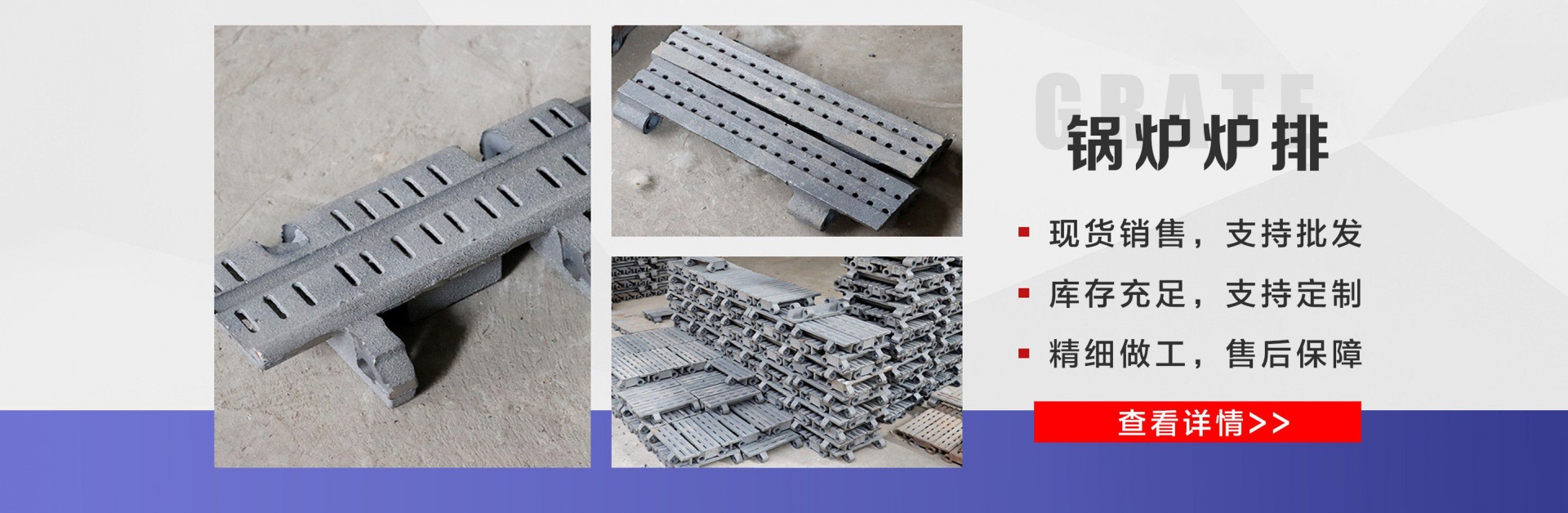 麗新機(jī)械配件廠位于“江北水城”之稱的聊城。公司主要銷售:鍋爐爐門,爐篦子,爐排片,鍋爐爐排,省煤器管,鍋爐風(fēng)帽,鍋爐配件等多種產(chǎn)品,公司堅(jiān)持以市場(chǎng)為導(dǎo)向、以誠(chéng)實(shí)守信為經(jīng)營(yíng)理念,竭誠(chéng)為廣大客戶服務(wù)!  爐排是鍋爐或工業(yè)爐中堆置固體燃料并使之有效燃燒的部件。整個(gè)爐排主要包括框架和爐排片兩個(gè)部分。爐排片通常用鑄鐵制造,組裝后片與片之間保持必要的通風(fēng)縫隙,并且往往還在爐排下邊設(shè)置可以調(diào)節(jié)風(fēng)量的分隔的通風(fēng)室,以便空氣通過縫隙進(jìn)入燃料層燃燒。燒盡后的灰渣用人工或機(jī)械方法排出。爐排有固定式、移動(dòng)式、往復(fù)式、振動(dòng)式和下飼式等類型。  鍋爐爐排操作實(shí)現(xiàn)了機(jī)械化,減輕了司爐工的勞動(dòng)強(qiáng)度。快裝出廠,到使用現(xiàn)場(chǎng)后,裝接閥門儀表,鼓、引風(fēng)機(jī)、煙風(fēng)管道、省煤器、除塵器、出渣機(jī)。上煤機(jī)及水電路等即可運(yùn)行,且具有起動(dòng)生火快等特點(diǎn)。  公司憑借豐富的規(guī)格品種,過硬的質(zhì)量,合理的價(jià)格,完善的服務(wù),不斷地受到新老用戶及業(yè)內(nèi)人士的肯定和信任,我們本著及用戶之所及,想用戶之所想的服務(wù)宗旨不斷地拼搏,進(jìn)取,在此對(duì)多年來支持我們的各行各業(yè)的新老朋友表示由衷的感謝!  我公司的理念:“誠(chéng)信、合作、互利、雙贏”!以最大的努力滿足客戶的需求。...